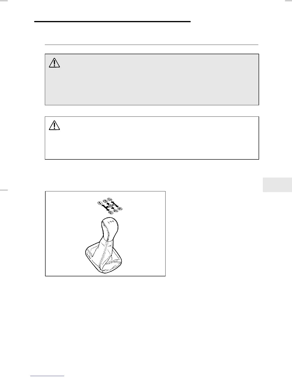 The shift pattern is shown on the shift lever knob. When shifting from 5th
