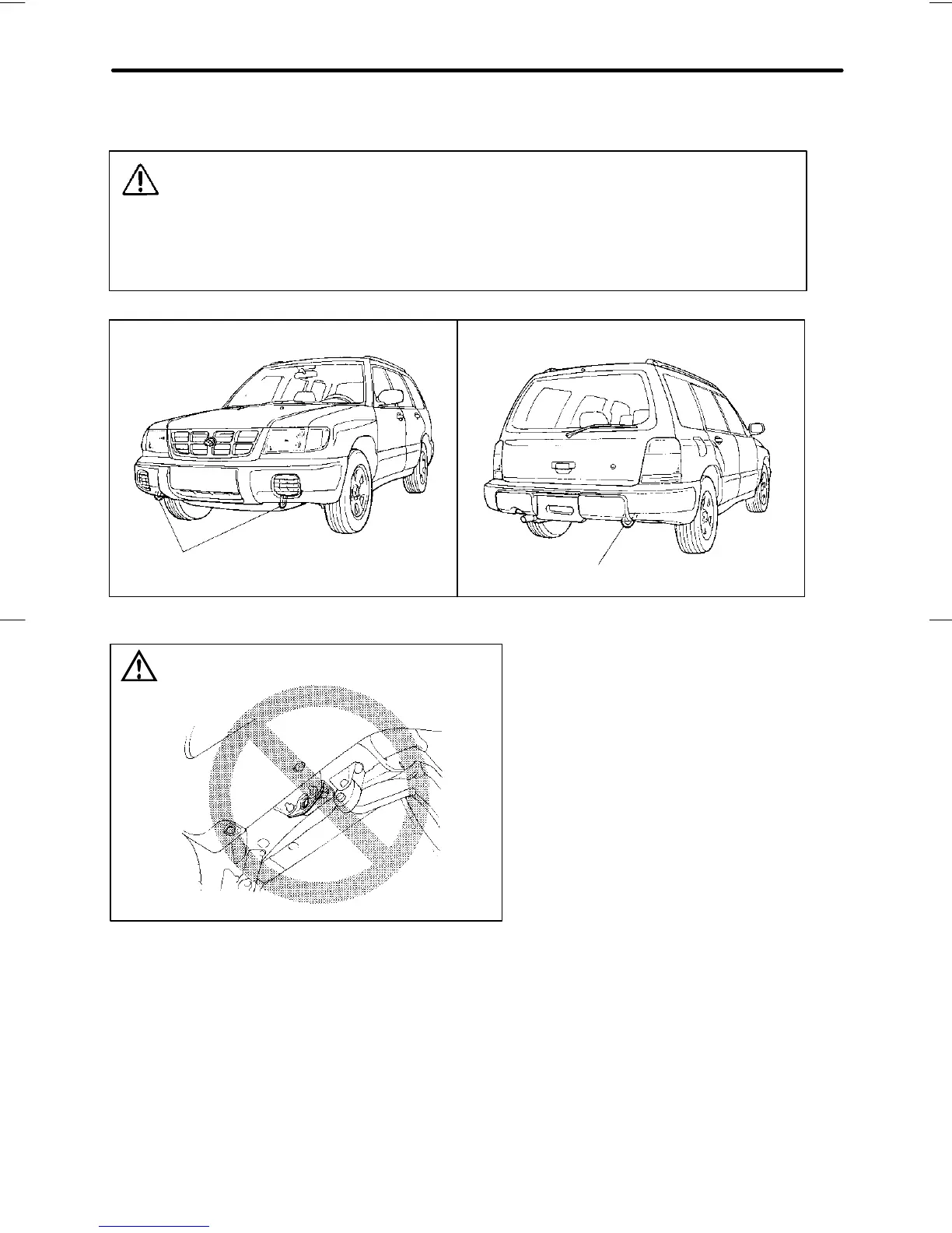 D Do not apply excessive lateral load to the towing hooks.