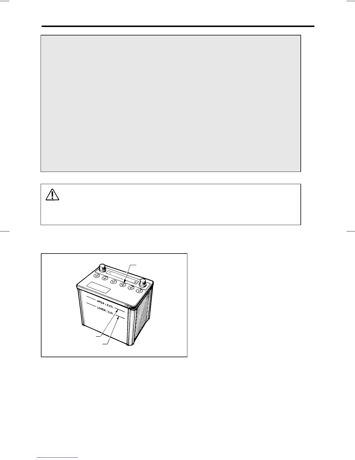 However, if the battery fluid level is below the lower level, remove the