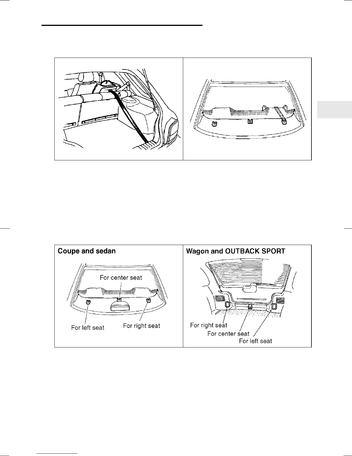 on the back wall of the cargo area (on station wagon and OUTBACK