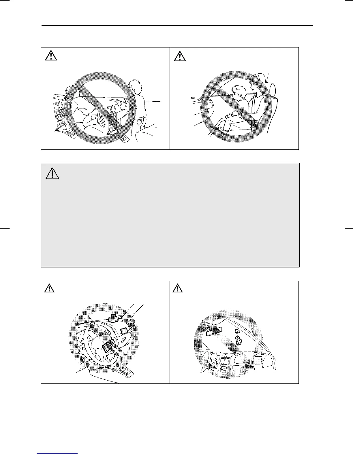 D Do not put any objects over the steering wheel pad and dash-