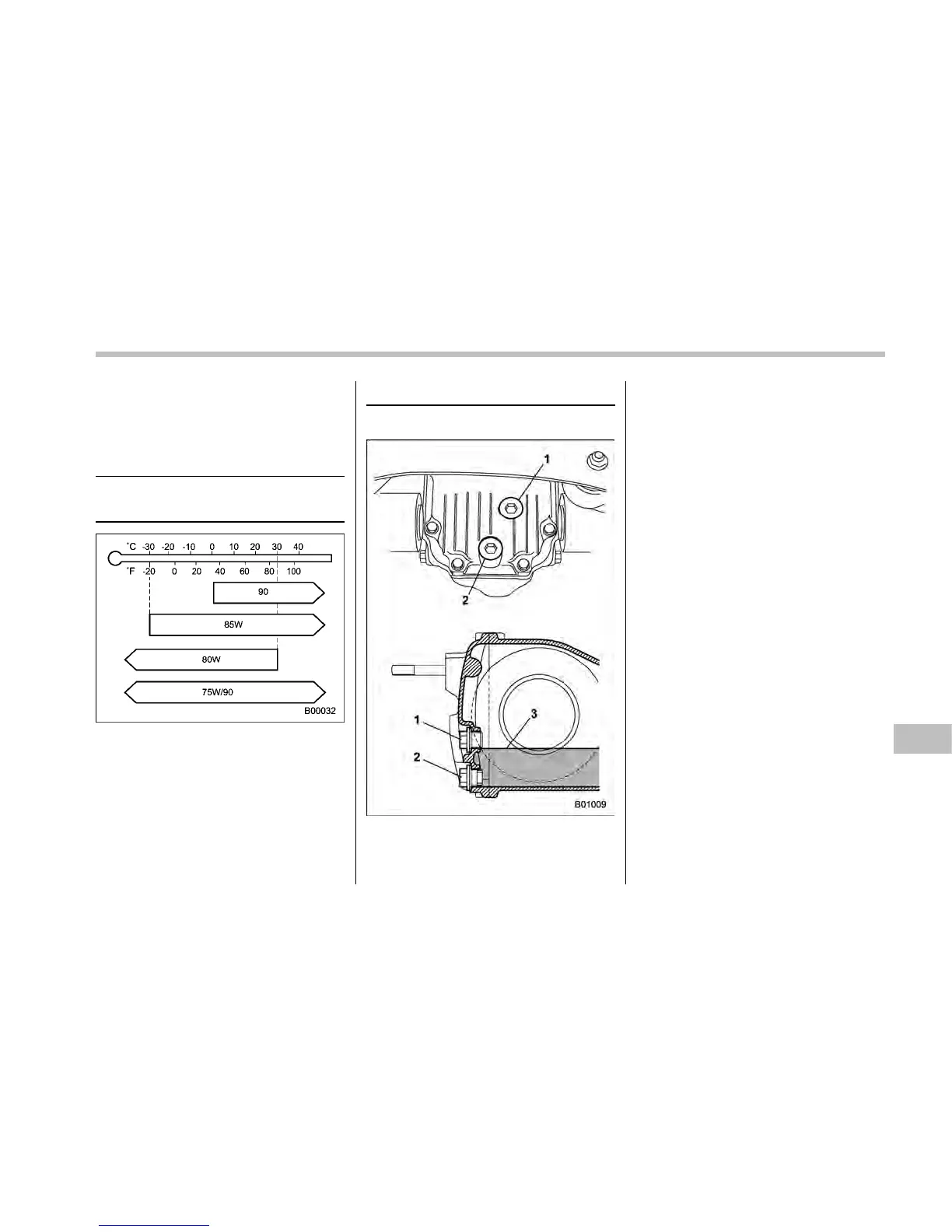 Subaru 2001 Outback - Recommended Grade and Viscosity; Rear Differential Gear Oil; Checking the Gear Oil Level