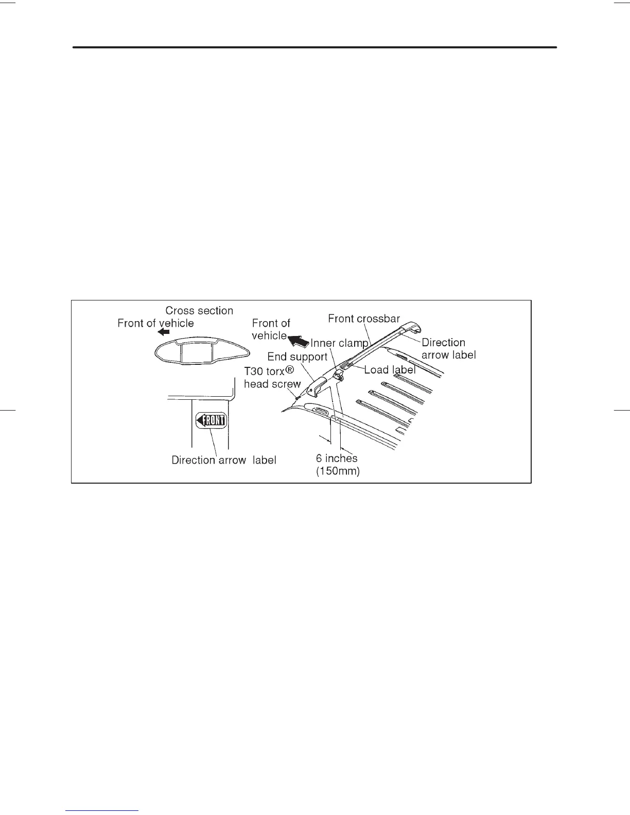 ports rest on the top of the roof rails approximately 6 inches (150 mm)
