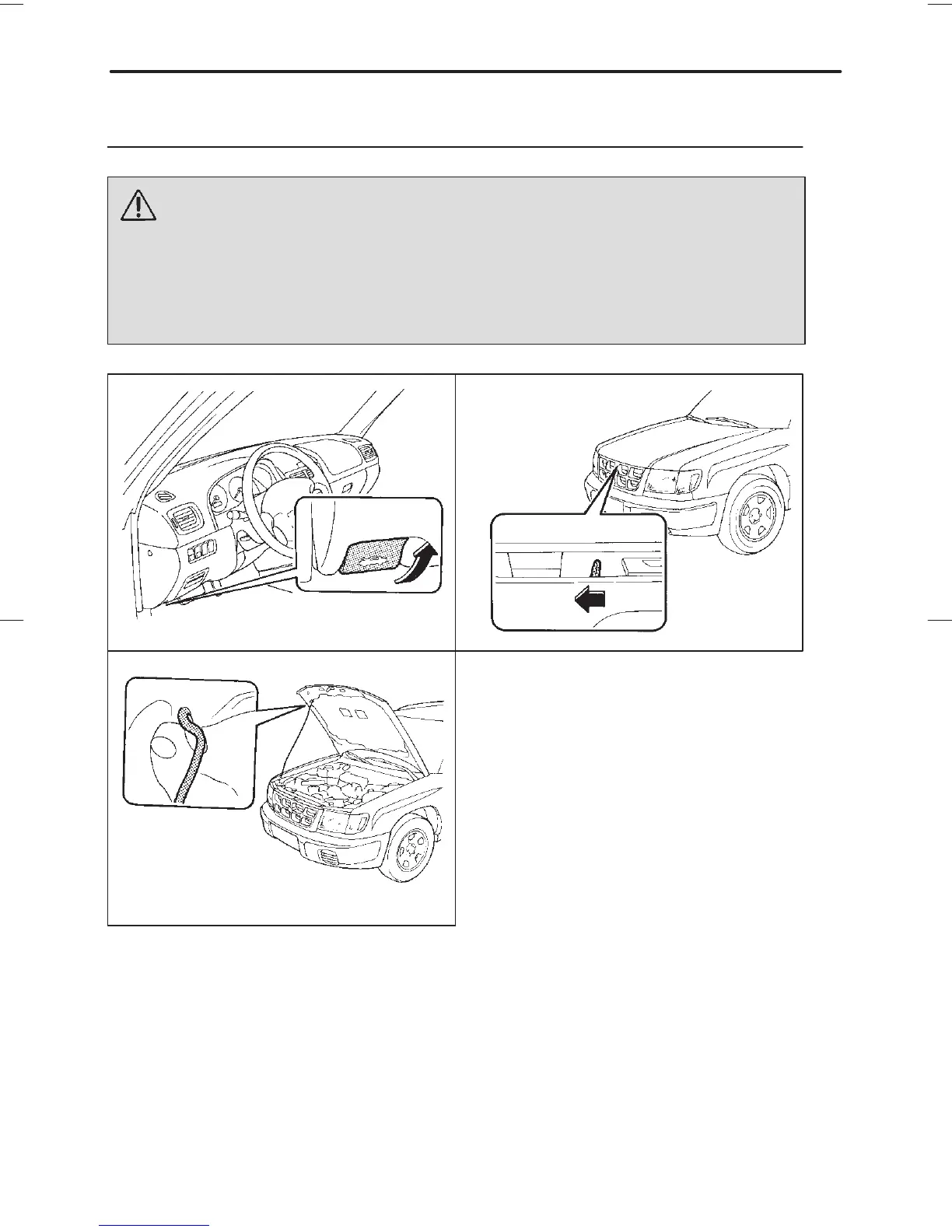 engine hood by moving the lever toward the left. Lift up the hood, release