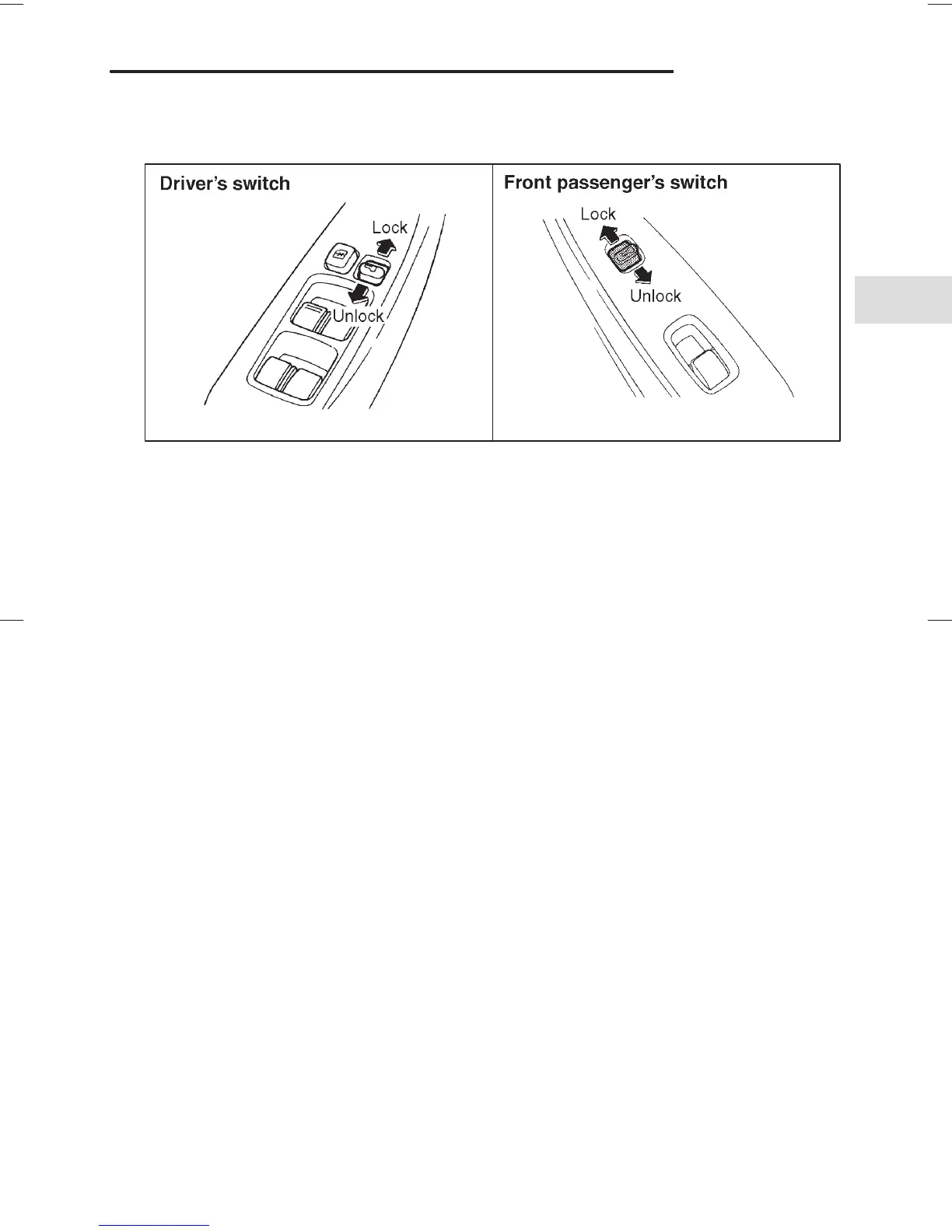 door locking switches located at the driver’s side and the front passen-