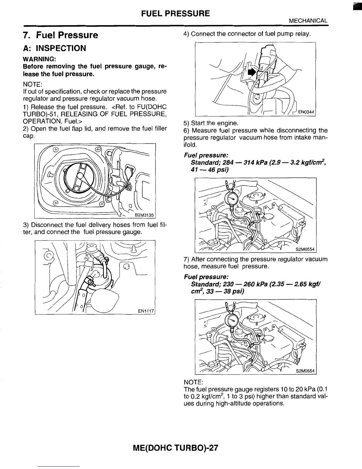 ter, and connect the fuel pressure gauge.