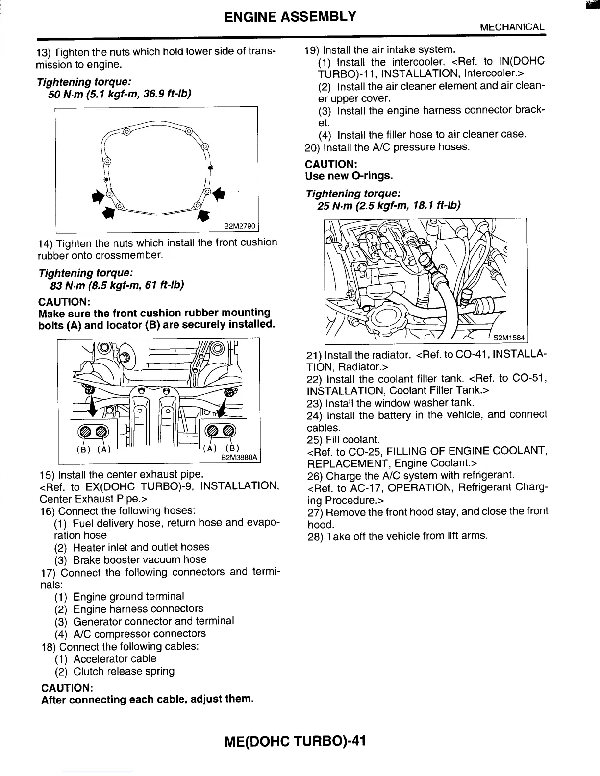21) Install the radiator. <Ref. to CO-41, INSTALLA-