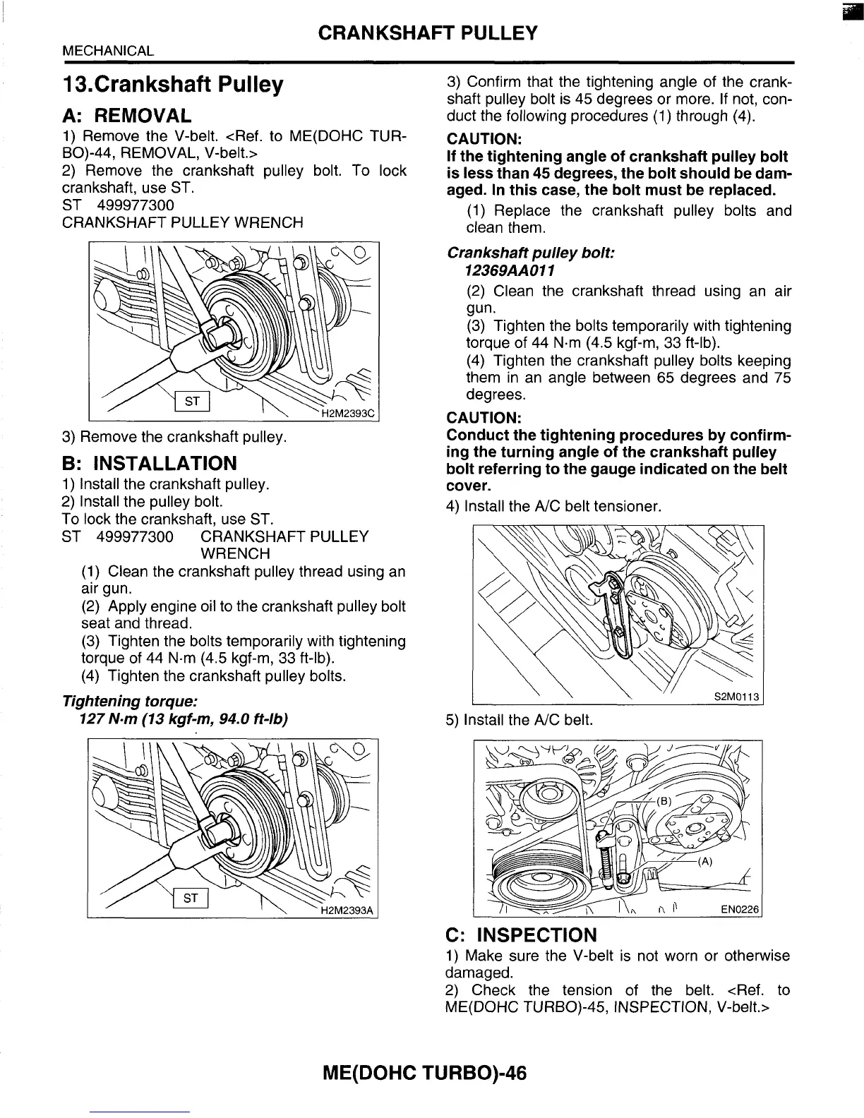 (4) Tighten the crankshaft pulley bolts.