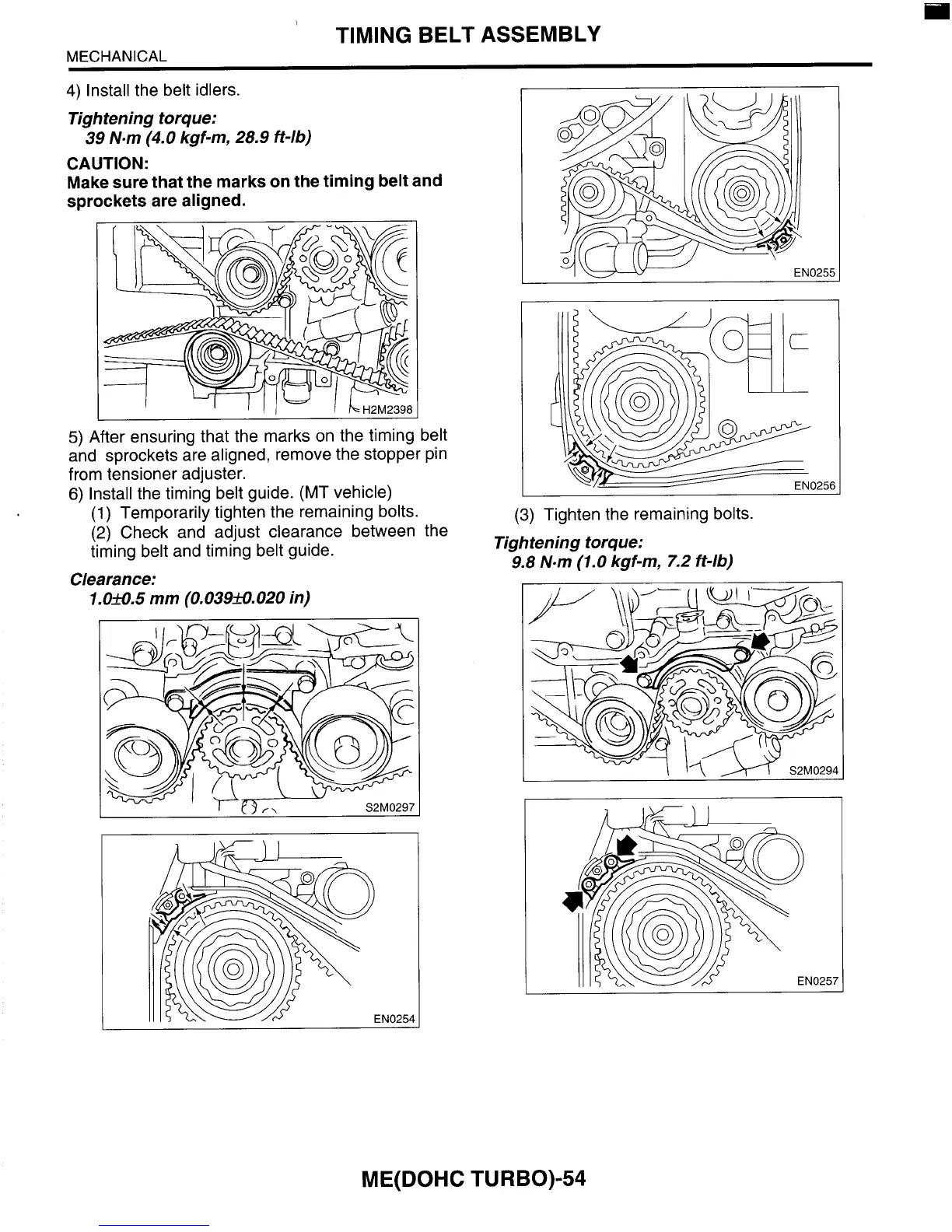 Make sure that the marks on the timing belt and