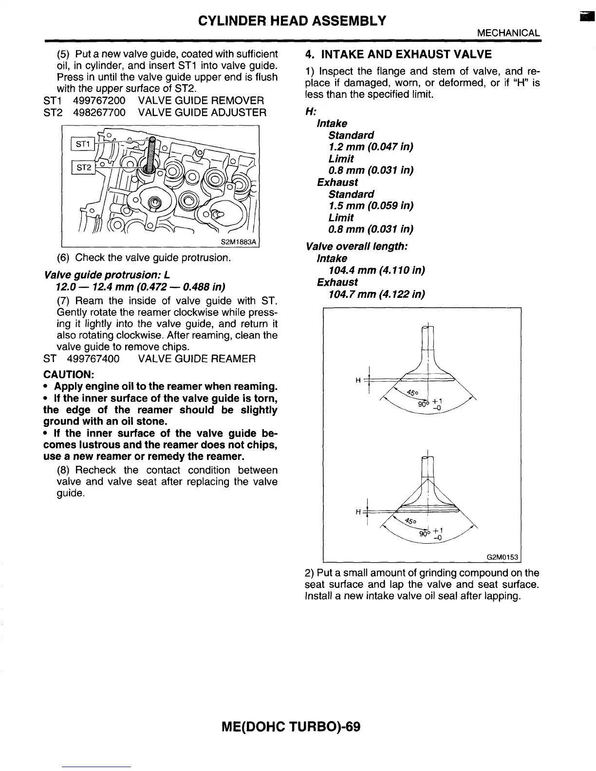 oil, in cylinder, and insert ST1 into valve guide.
