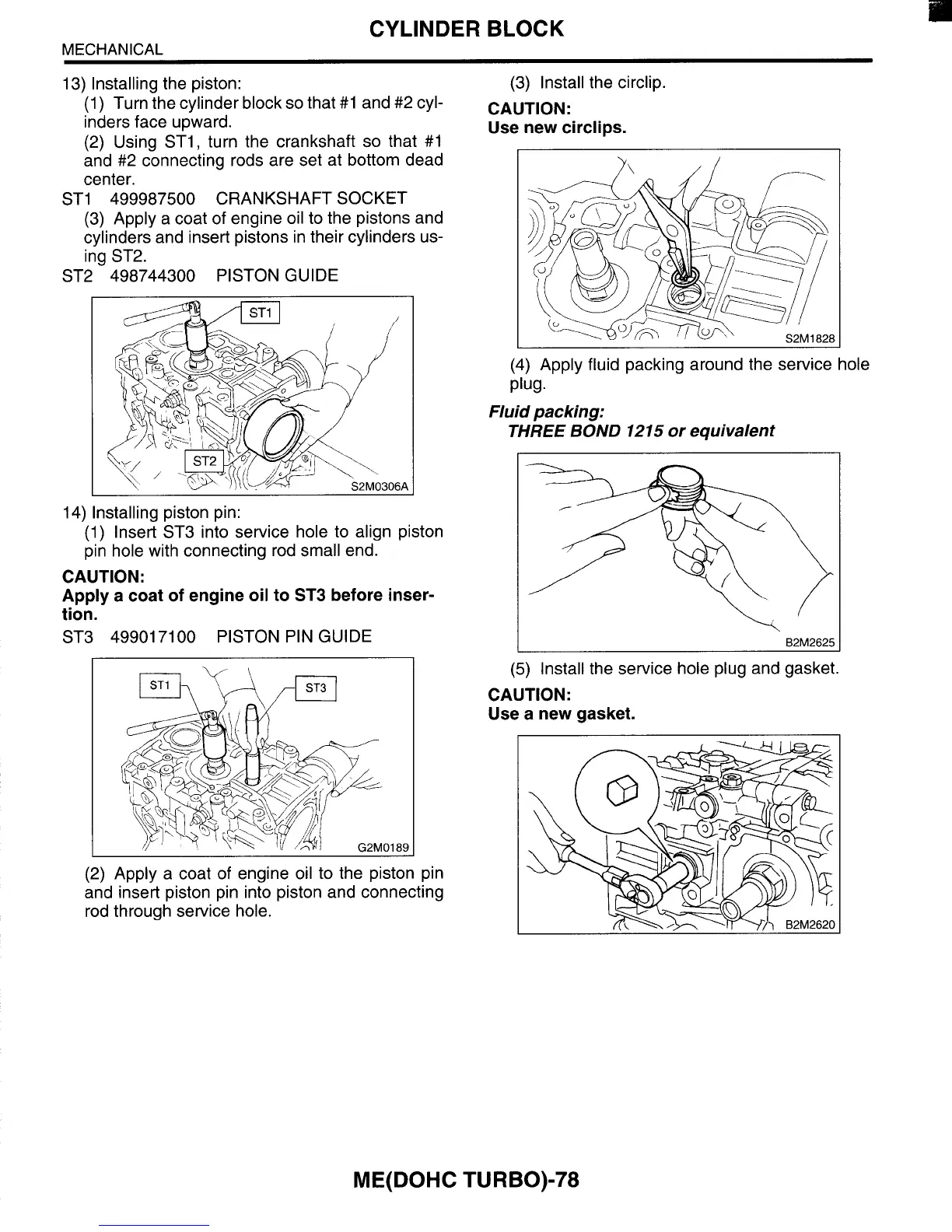 (1) Insert ST3 into service hole to align piston