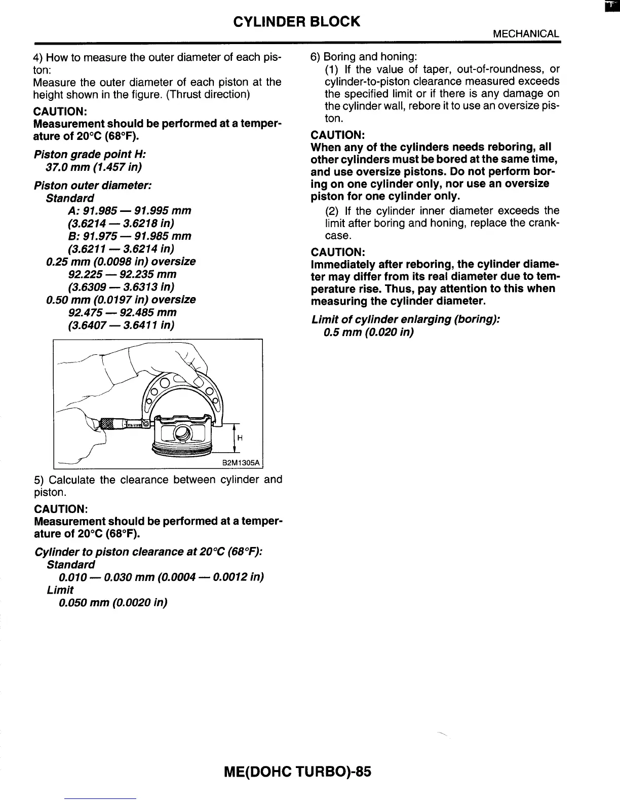 Immediately after reboring, the cylinder diame-