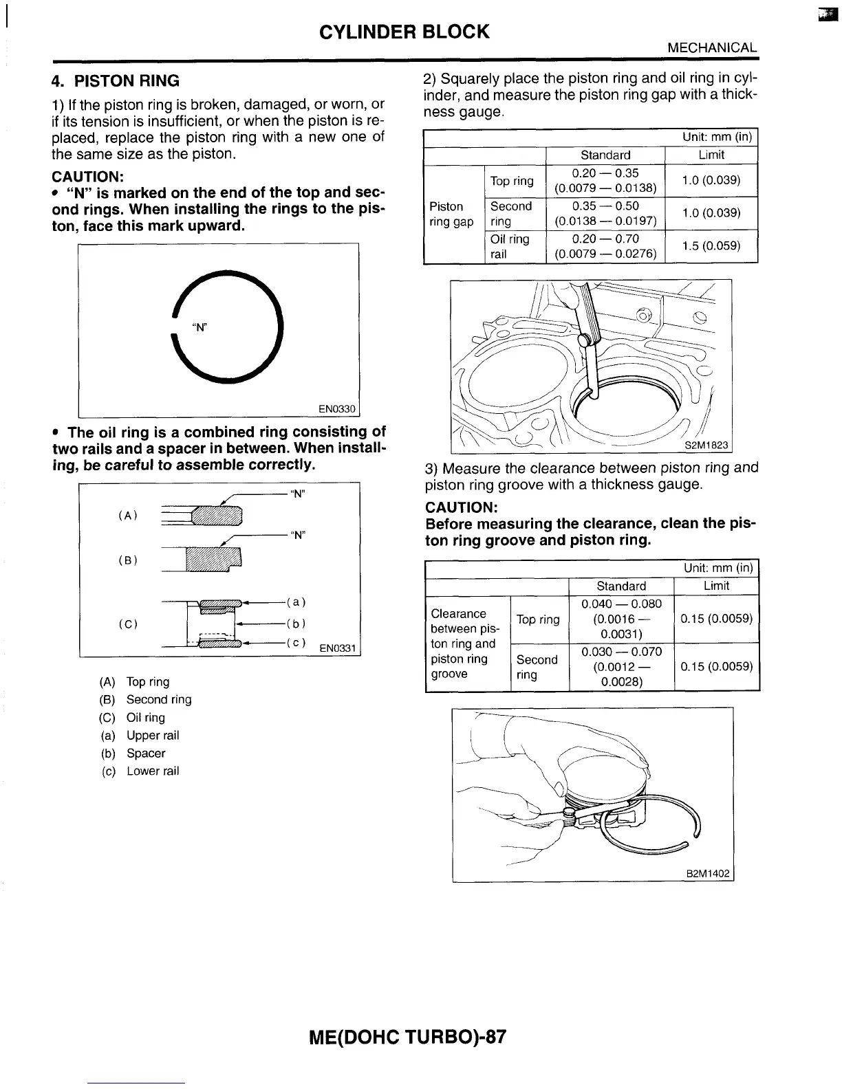 inder, and measure the piston ring gap with a thick-