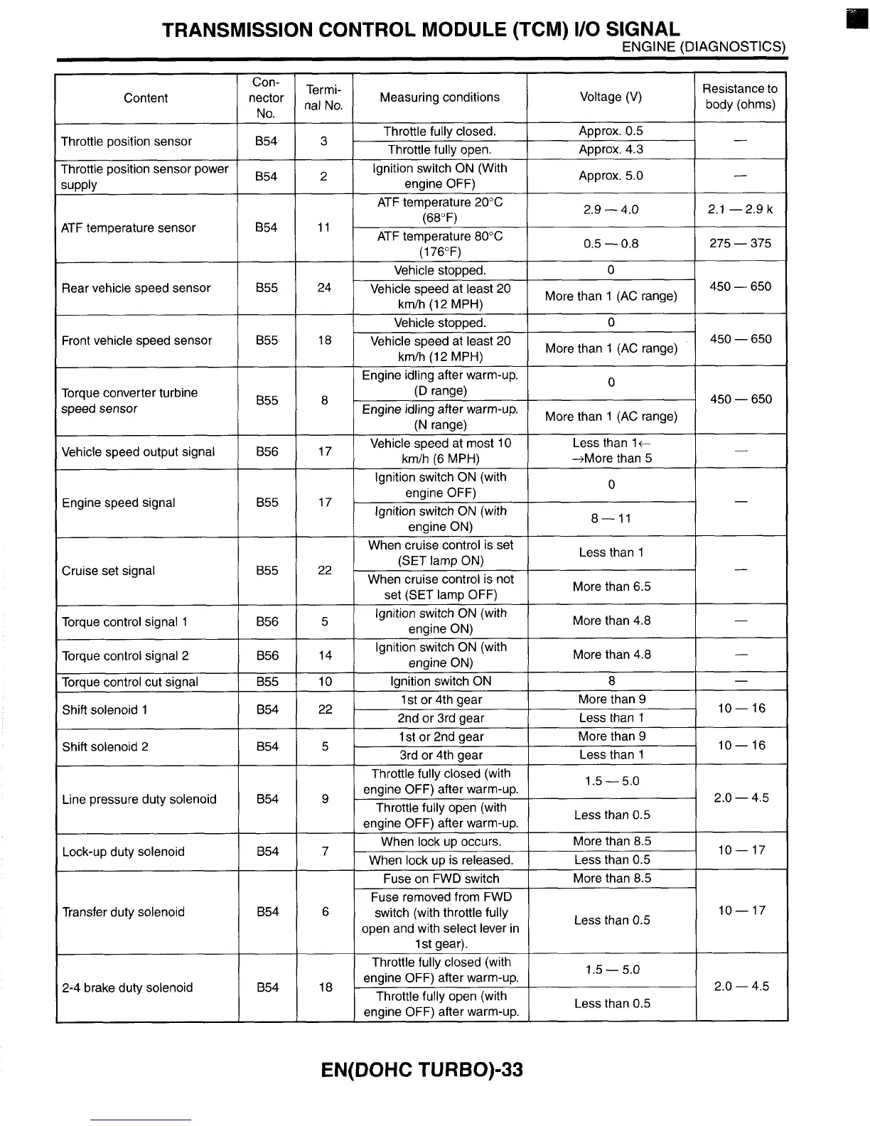 TRANSMISSION CONTROL MODULE (TCM) I/O SIGNAL