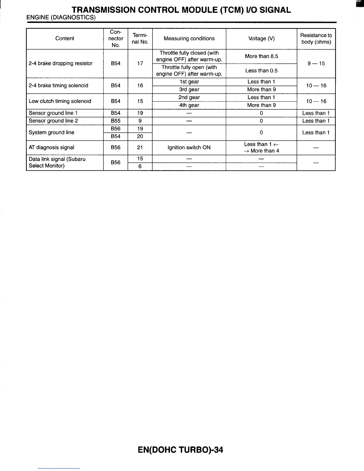 Subaru 2002 Impreza - Transmission Control Module (TCM) I;O Signal