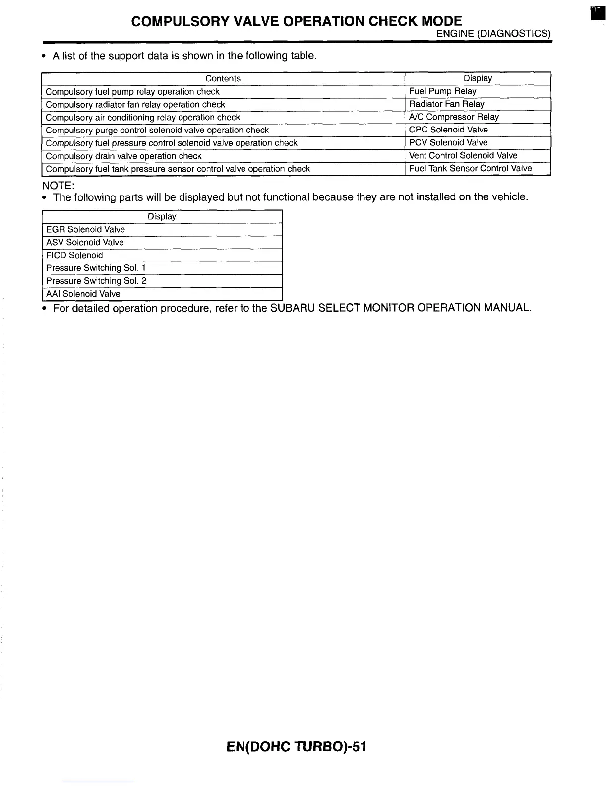 For detailed operation procedure, refer to the SUBARU SELECT MONITOR OPERATION MANUAL.
