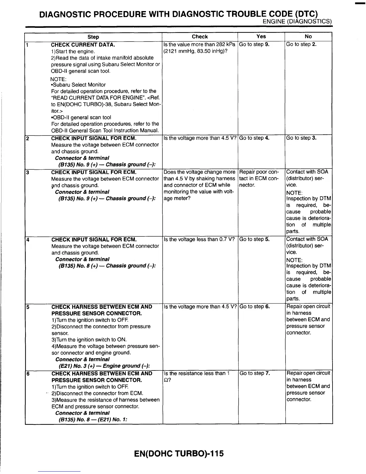 pressure signal using Subaru Select Monitor or