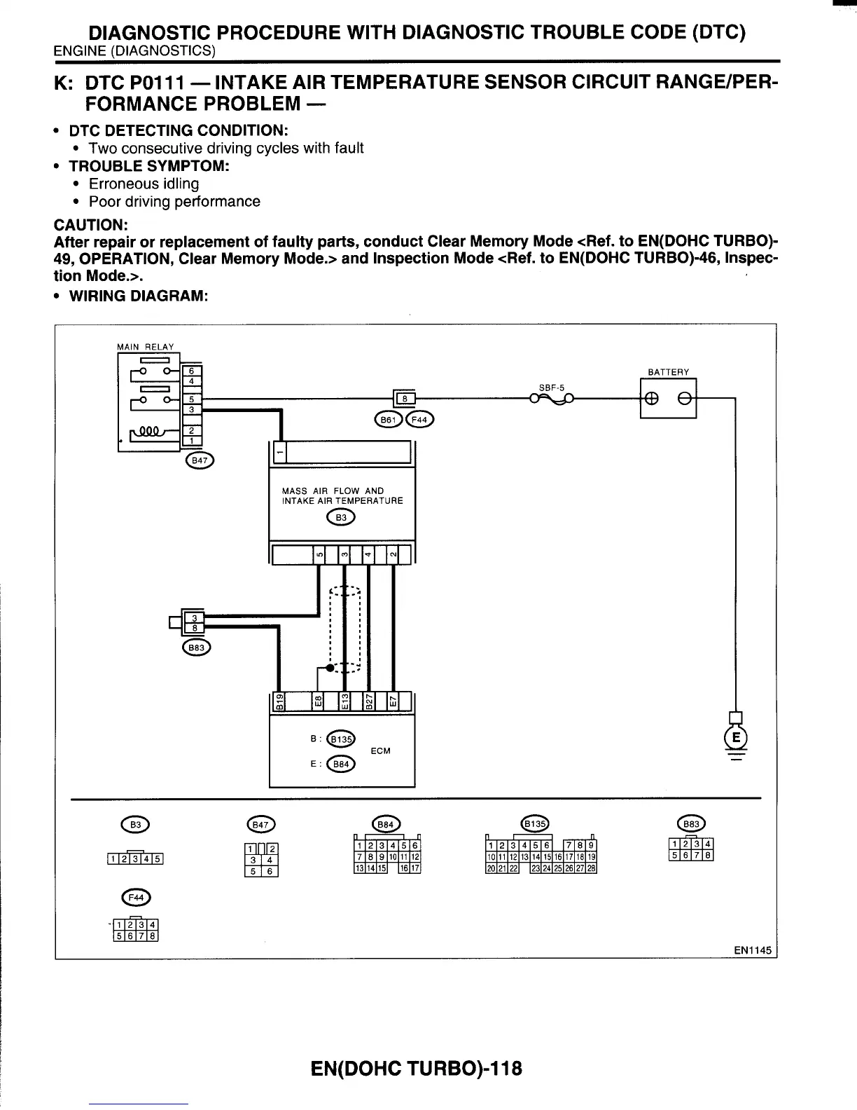 After repair or replacement of faulty parts, conduct Clear Memory Mode <Ref. to EN(D0HC TURBO)-