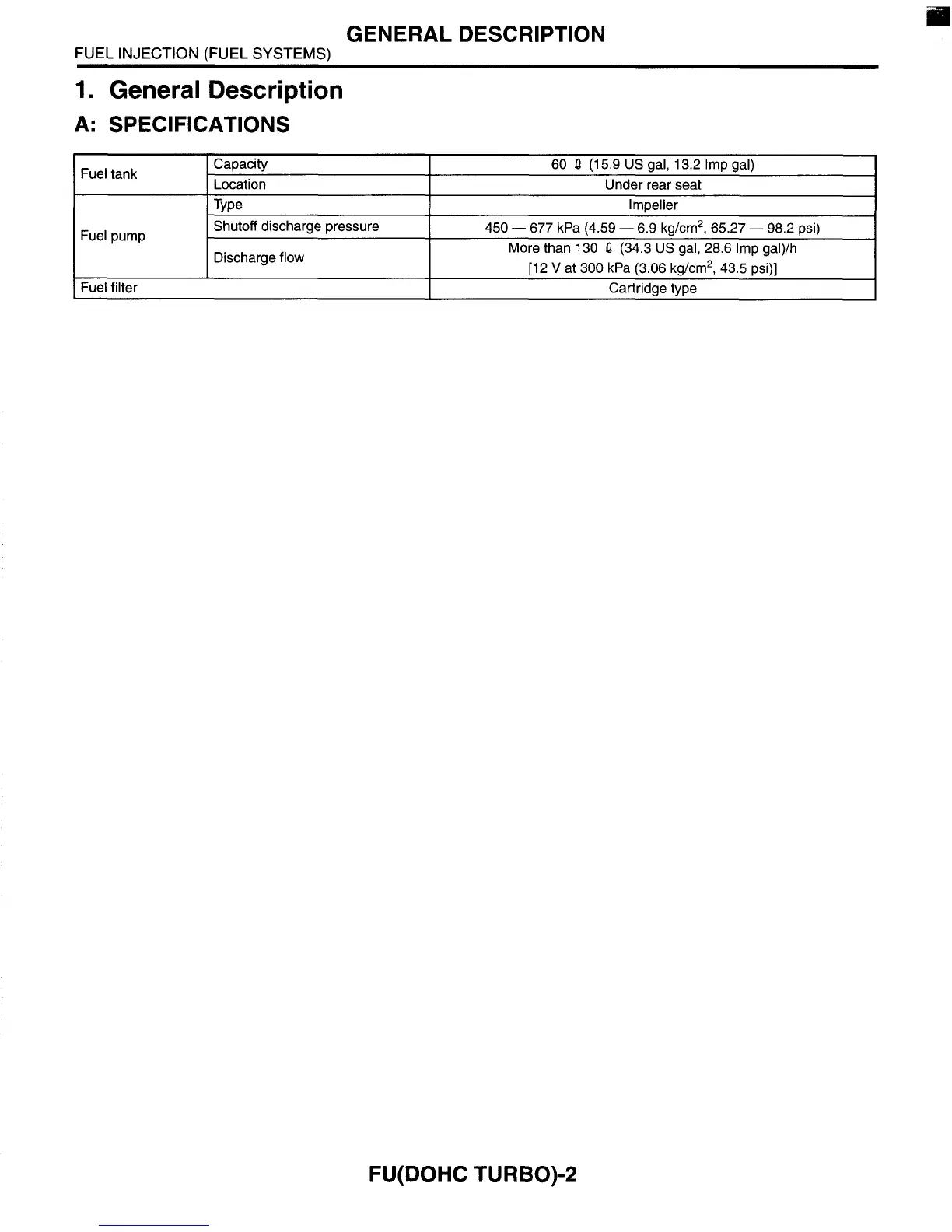 Subaru 2002 Impreza - Fuel Injection (Fuel Systems); General Description