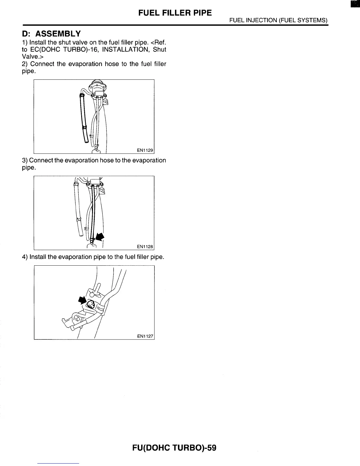 1) Install the shut valve on the fuel filler pipe. <Ref.