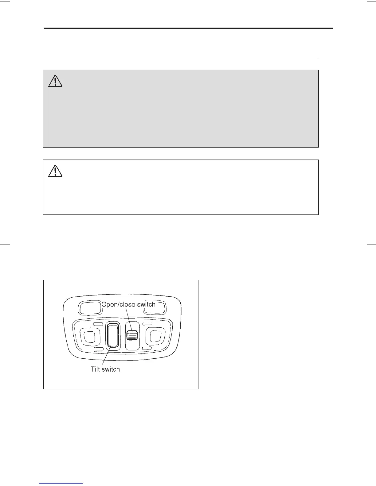 D Do not operate the moonroof if falling snow or extremely cold