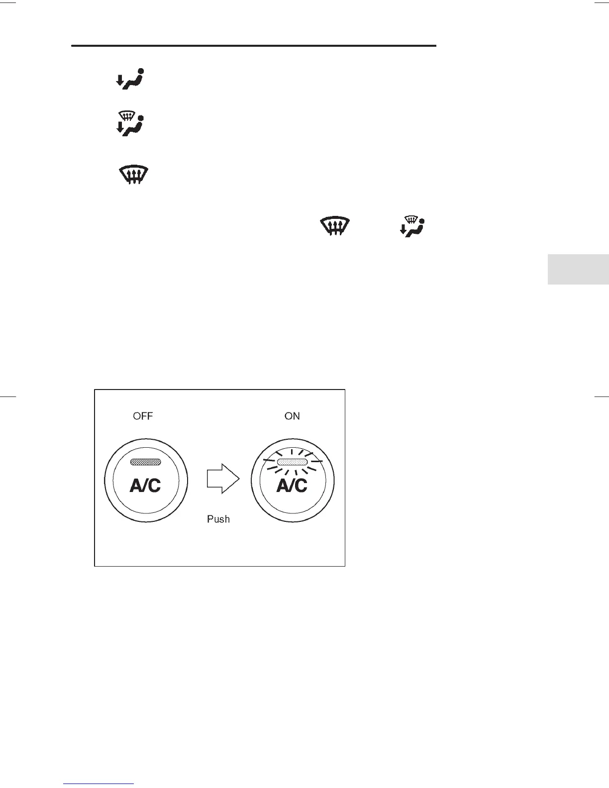 Push the air conditioner button while the fan is in operation to turn on