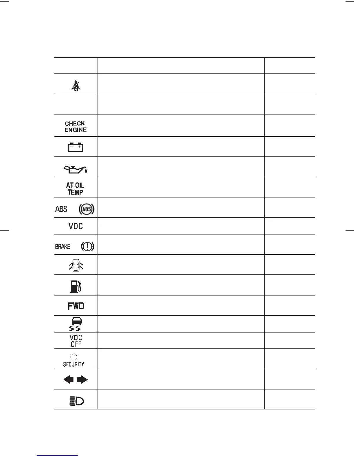 Front-wheel drive warning light (if equipped) 3-17