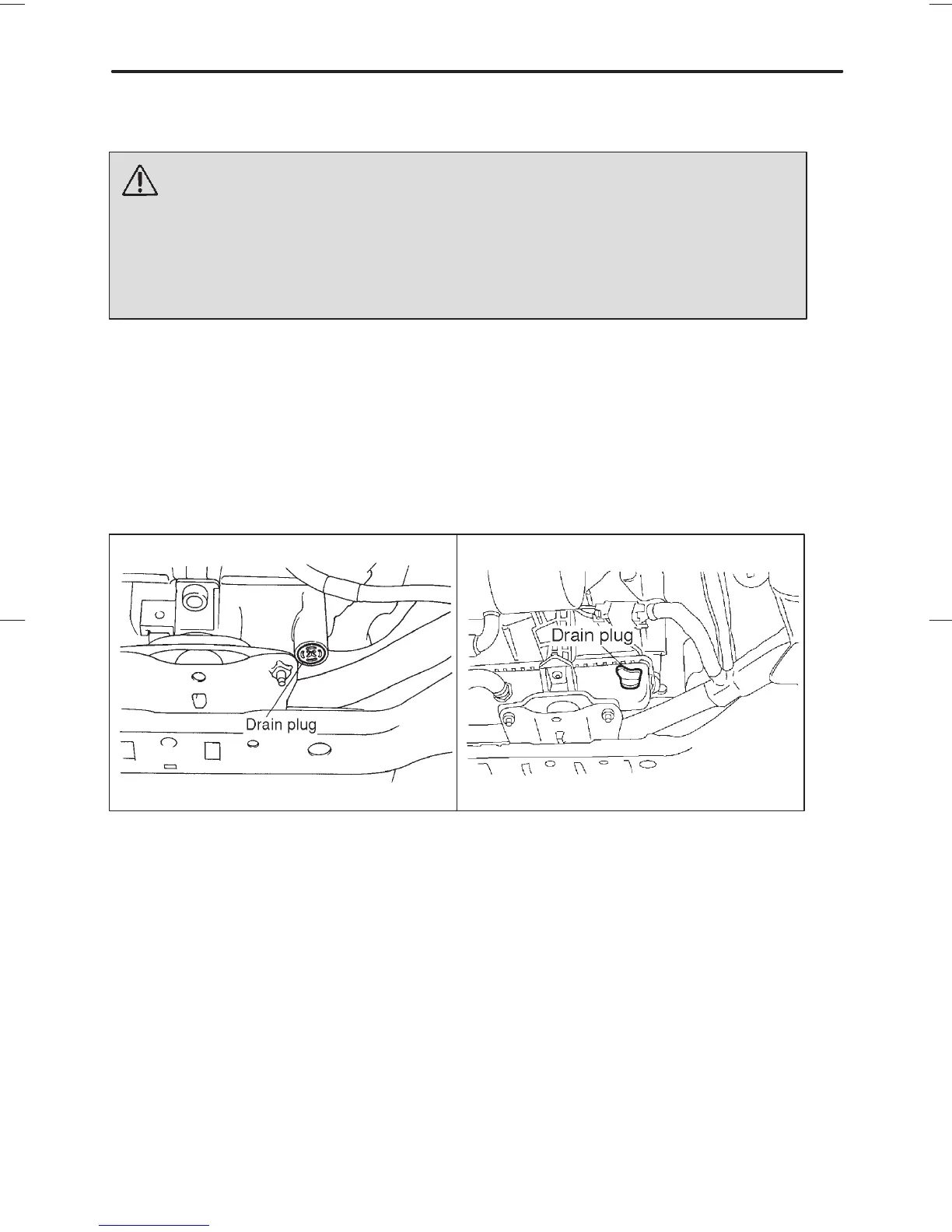 2. Place a proper container under the drain plug and loosen the drain