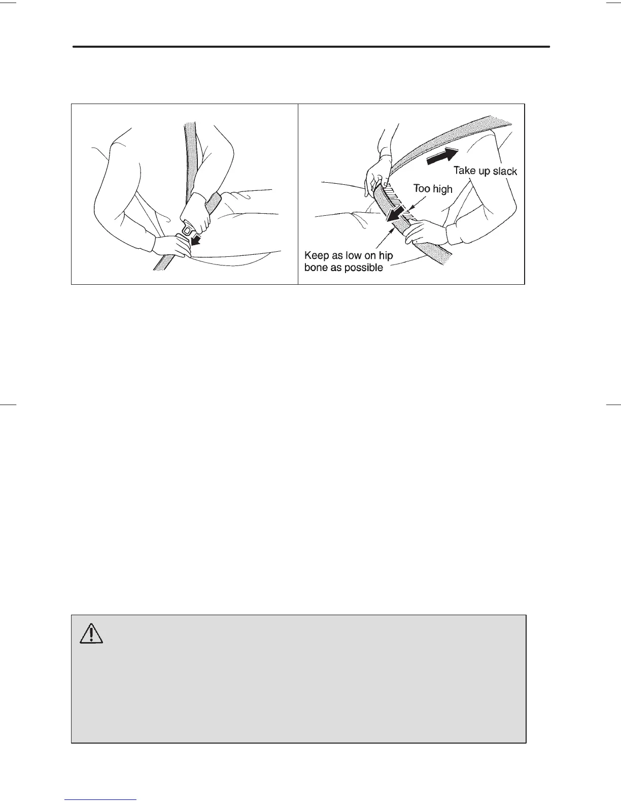 the lap belt as low as possible on your hips, not on your waist.