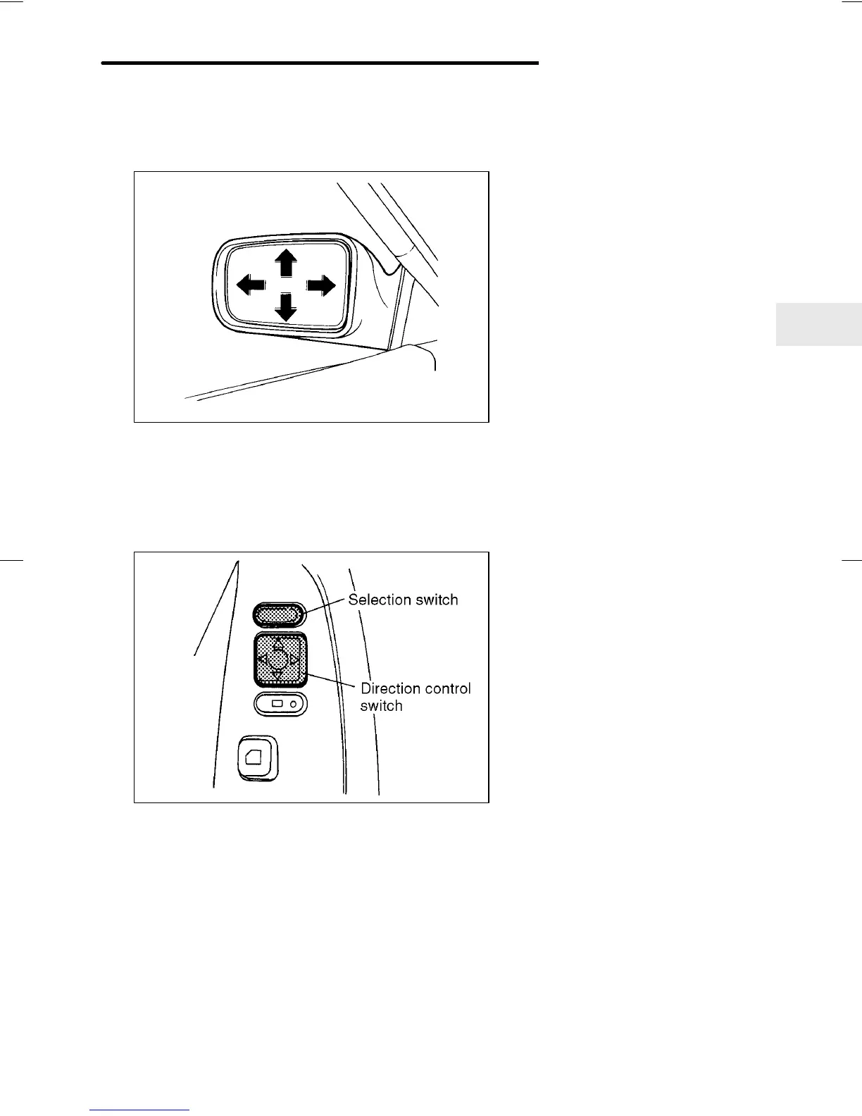To adjust the mirrors by hand, push where indicated by the arrows.