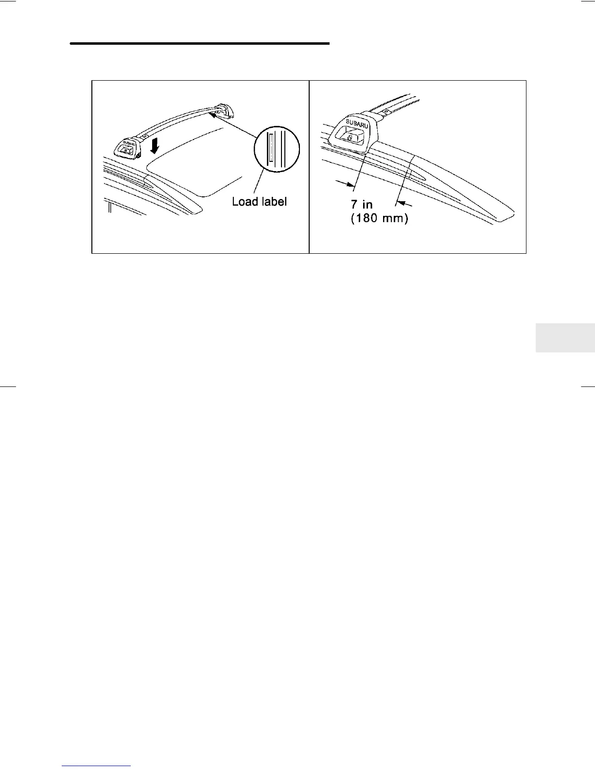 ports rest on the top of the roof rails 7 inches (180 mm) rearward in