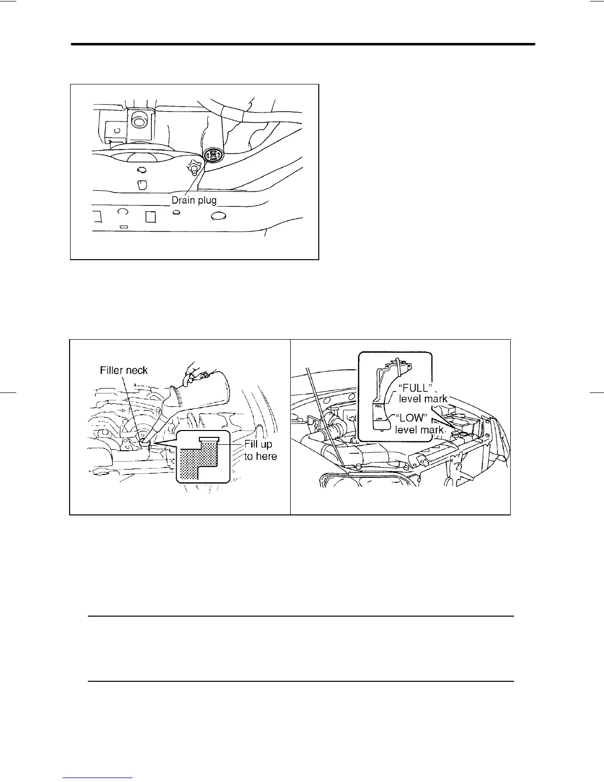 drain the coolant from the reserve tank. Tighten the drain plug secure-