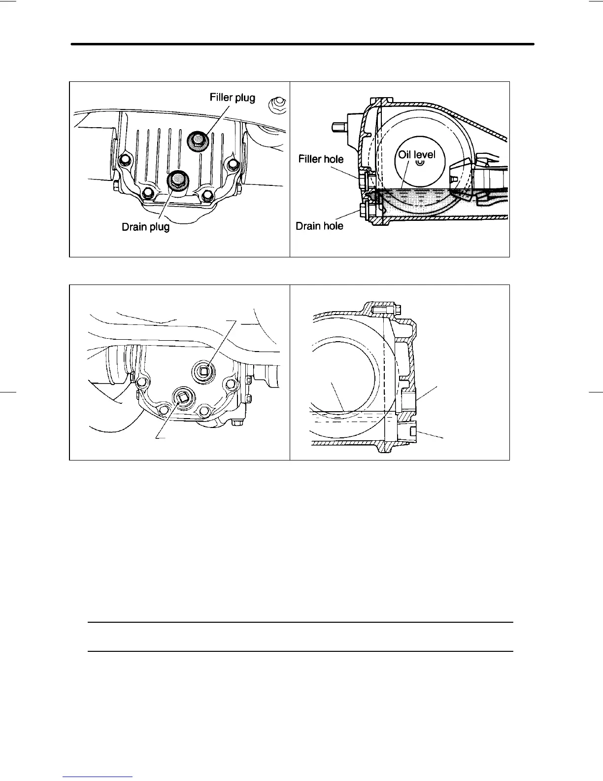 level is below the bottom edge of the hole, add oil through the filler