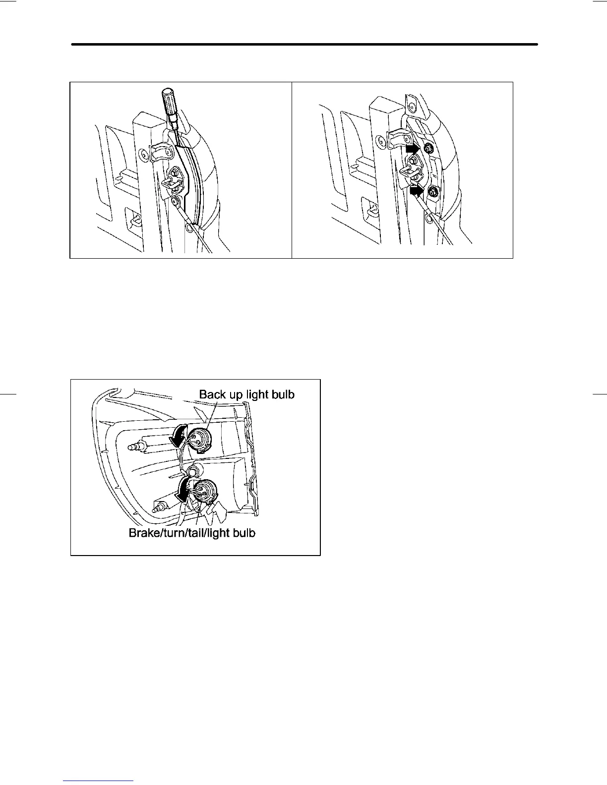 3. Remove the rear combination light mounting bolts. Then, slide the