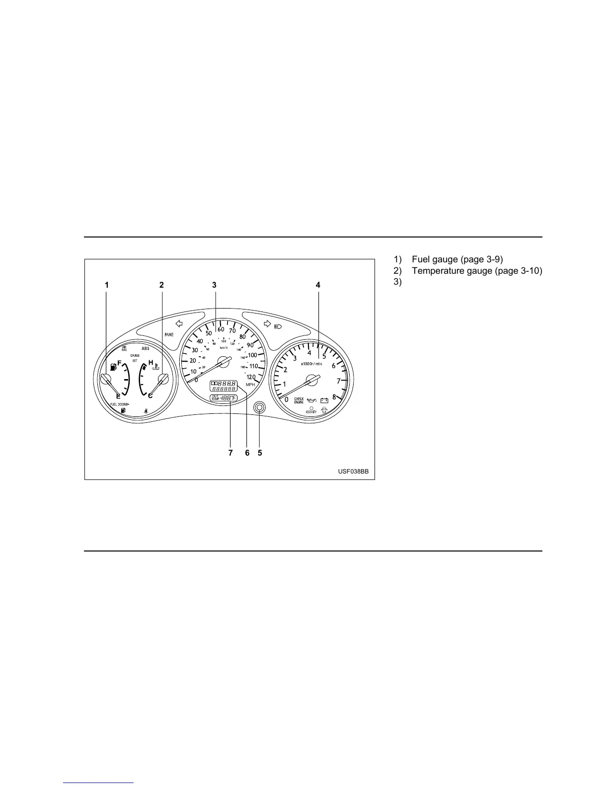1) Fuel gauge (page 3-9)