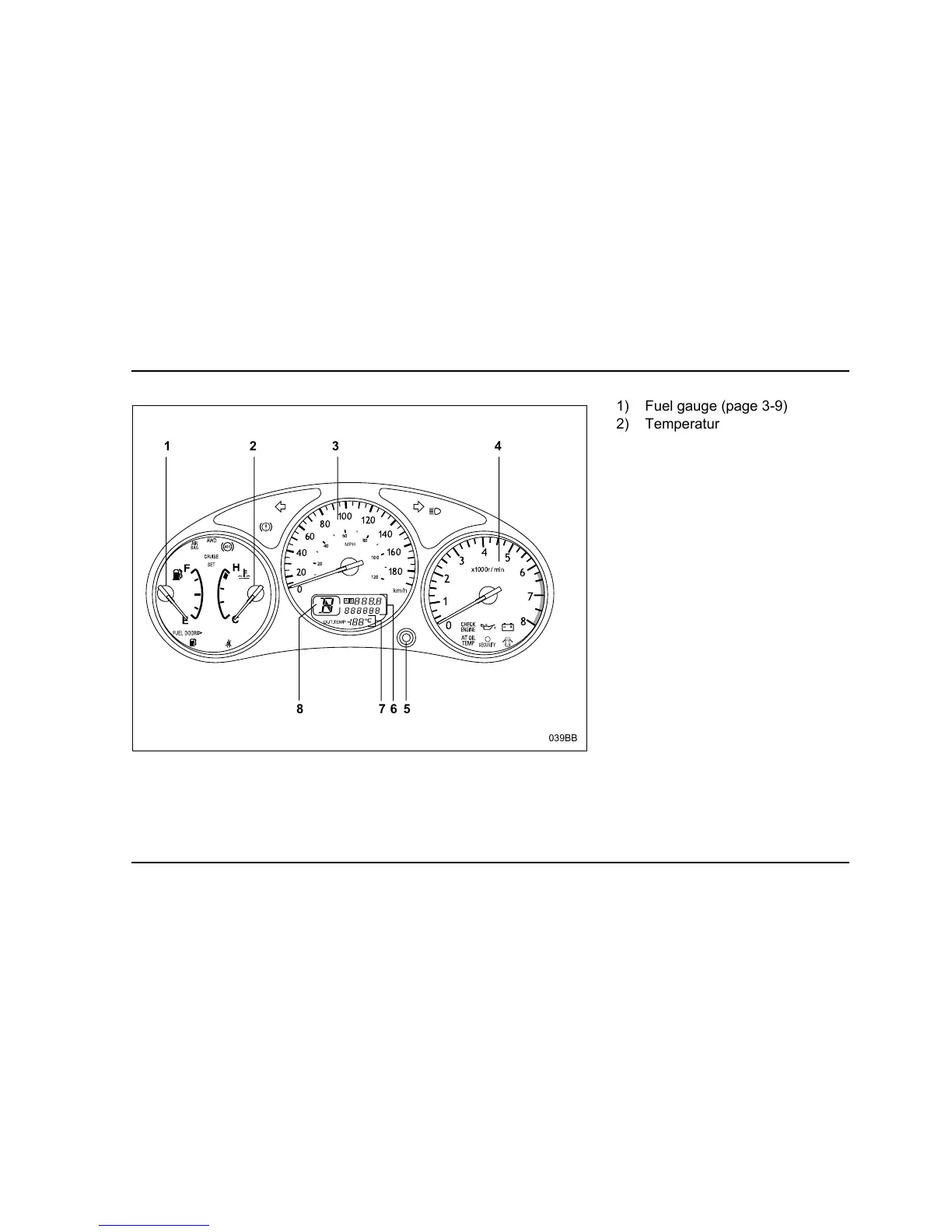 1) Fuel gauge (page 3-9)