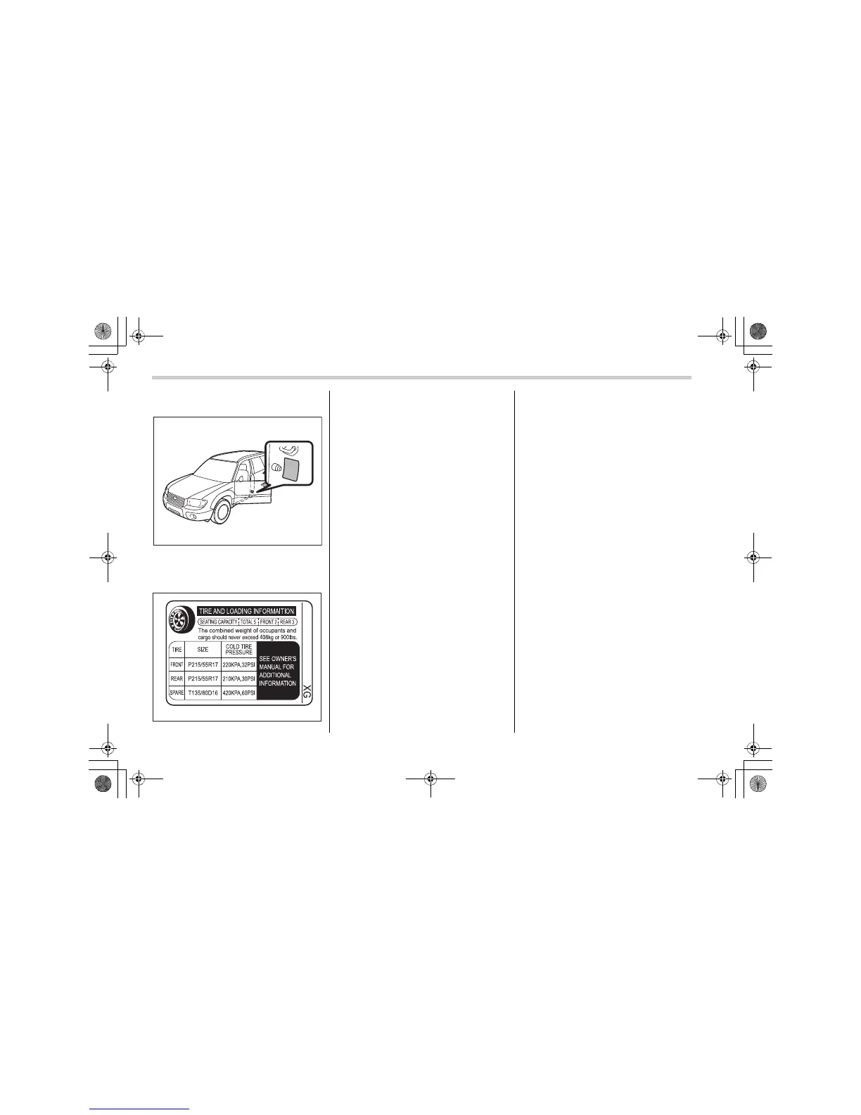 tire size, recommended cold tire infla-