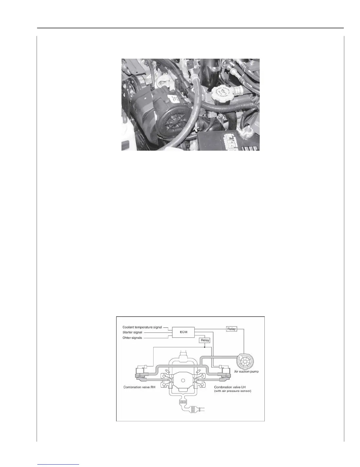 mixing with the exhaust. The air from the secondary air pump is divided between the left and right