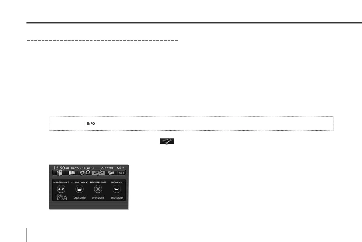 You can program your maintenance schedule into the monitor system for any of the following items, in
