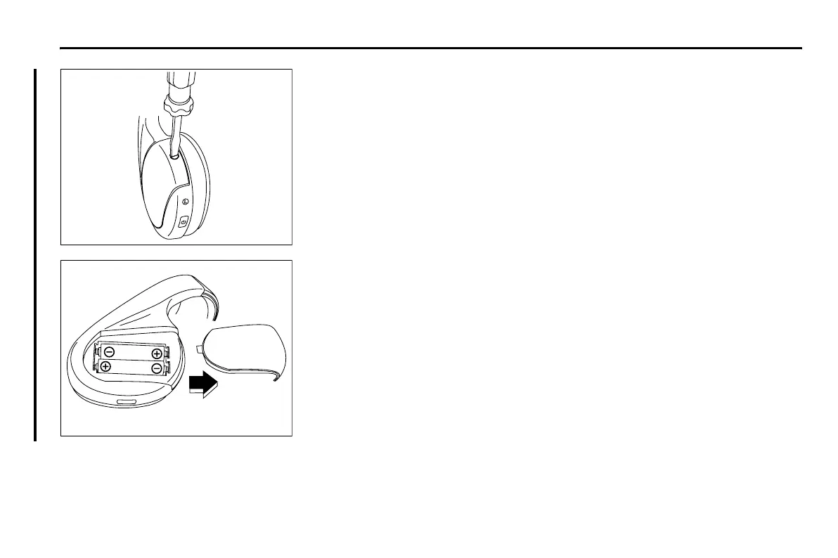 Remove the battery cover on the left earpiece by loosening the screw with a flat-