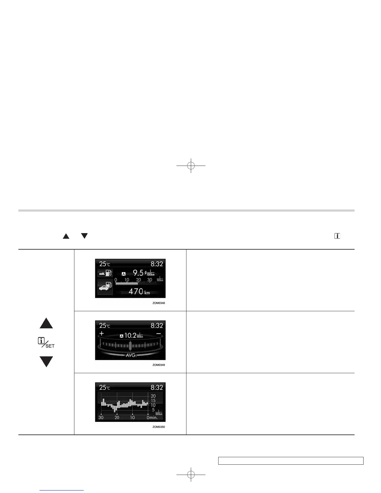 By operating the “ ” or “ ” switch on the steering wheel, you can switch the screen that is always displayed. Also, when the “ /SET”