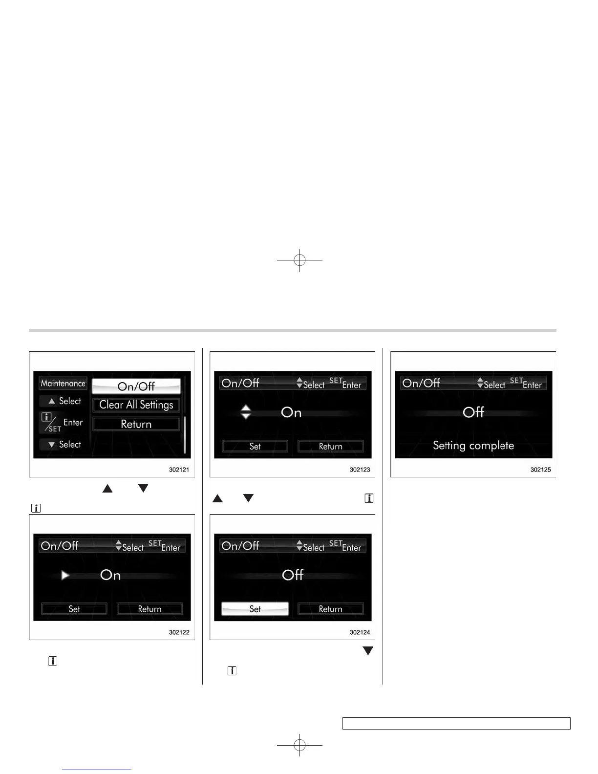 4. Select “On” or “Off” by operating the