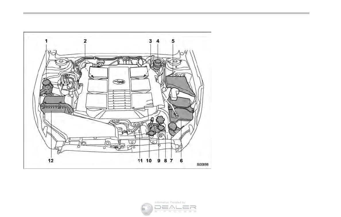 9) Engine coolant reservoir (page 11-16)