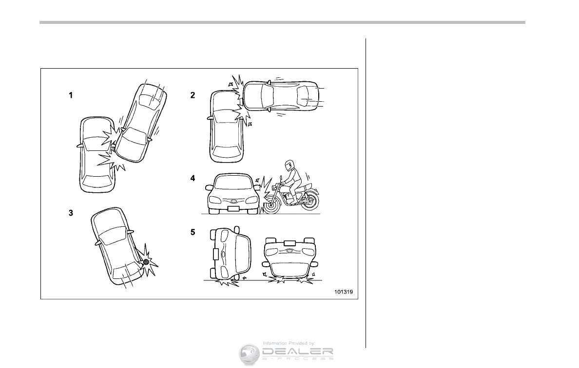 ! Examples of the types of accidents in which the SRS side airbag is unlikely to