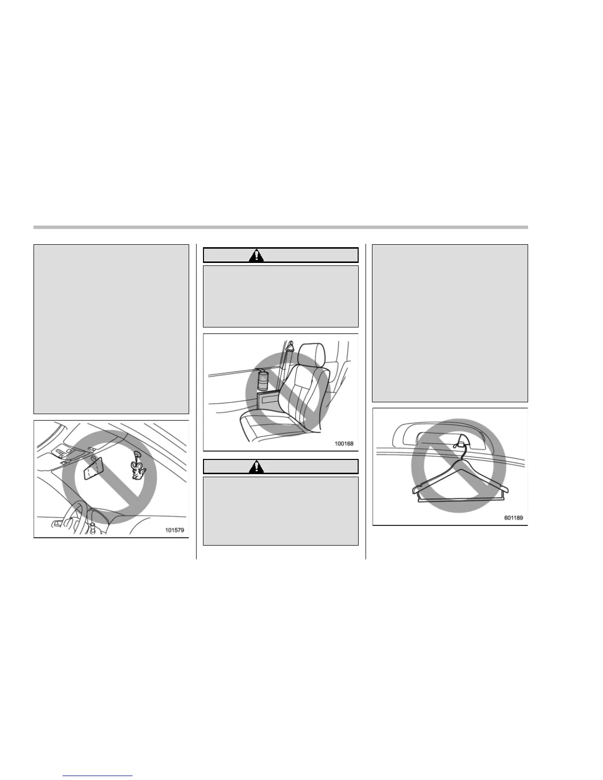 airbags and do not place objects