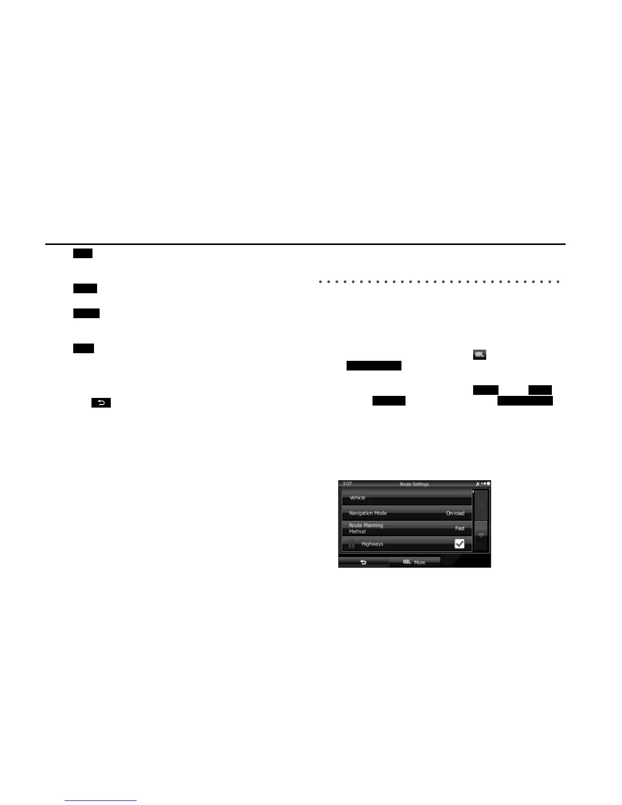 1 Use the “Route Settings” function as follows.