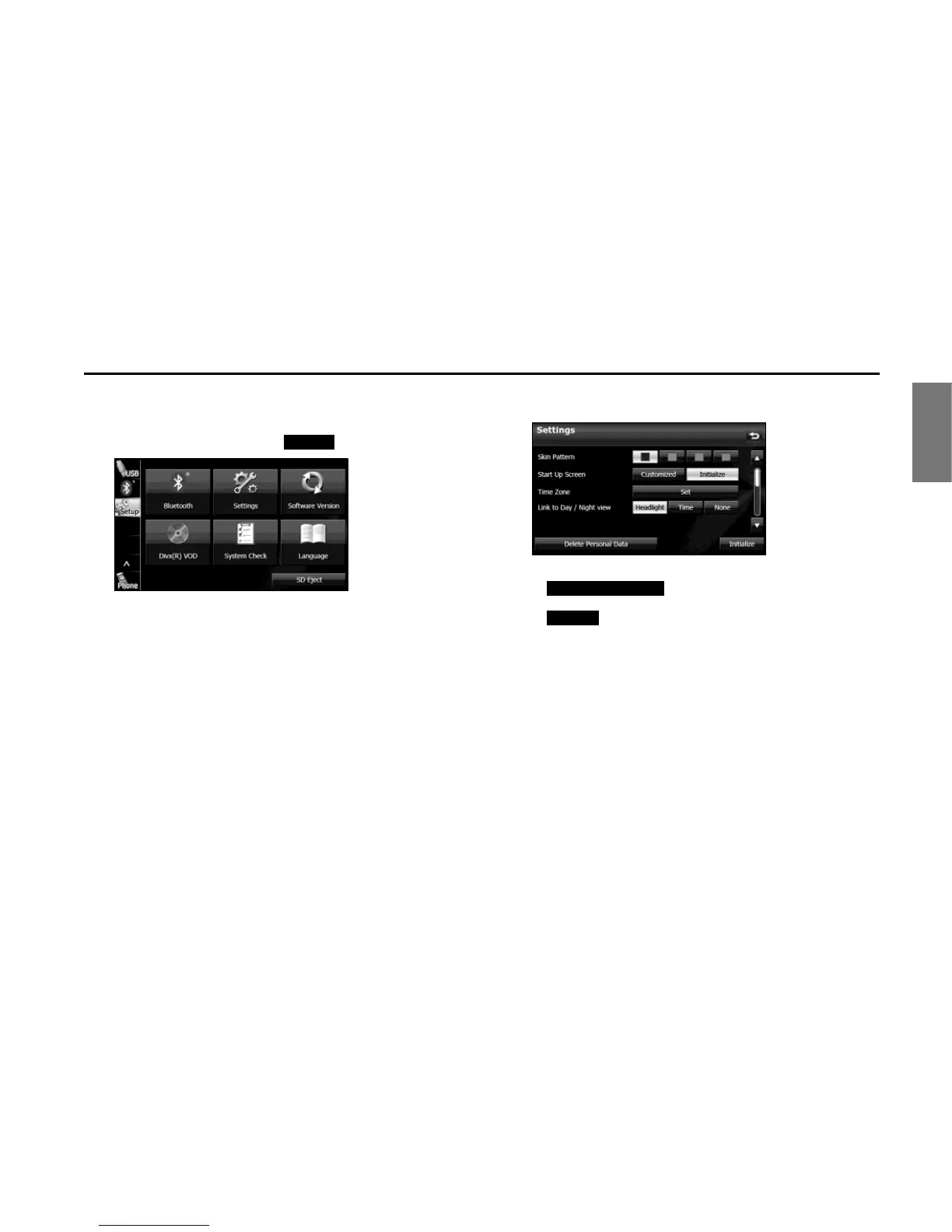 • Touch (Initialize) to return the settings in the Settings screen to
