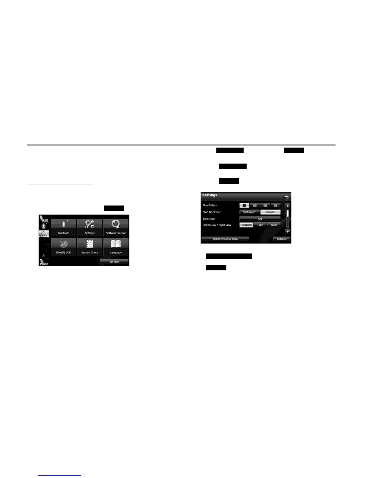 • Touch (Initialize) to return the settings in the Settings screen to