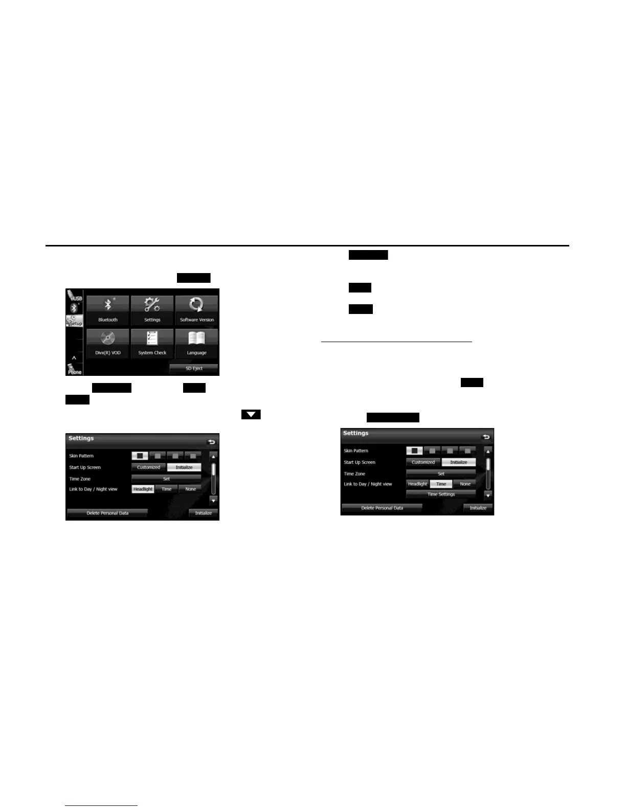 1 On the Setup screen, touch (Settings).