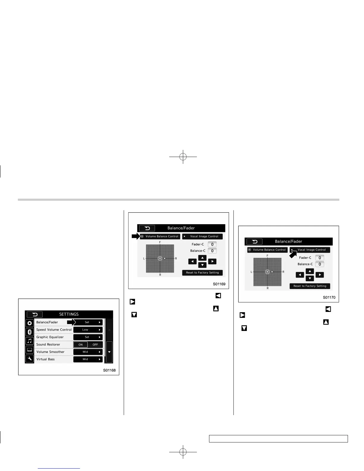 Touch the “Set” key of the “Balance/Fader”